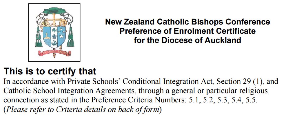 At St. John’s School our administrative procedure requires parents to provide a Preference Certificate when you fill in the Application for Enrolment document. Please note that your Preference of Enrolment Certificate is valid for two years prior to actual enrolment. At St. John’s School many of our families enrol their children from 3 months of age onwards. You will be asked to get new Preference Certificate before your child can be enrolled so that we comply with Auckland Catholic Diocese requirements.